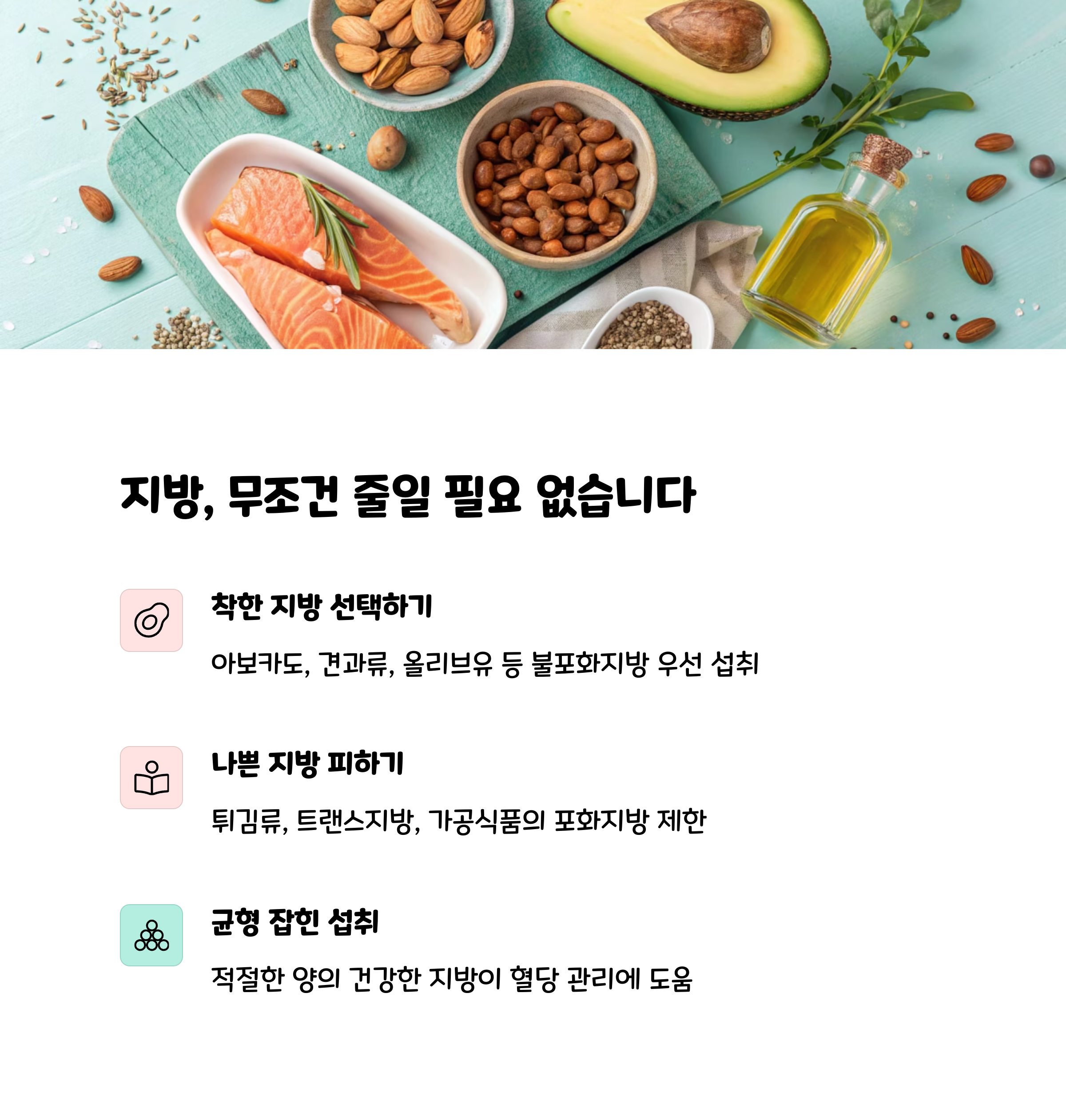 "착한 지방은 혈당보다 먼저 챙겨야 할 필수 에너지입니다" 🥑