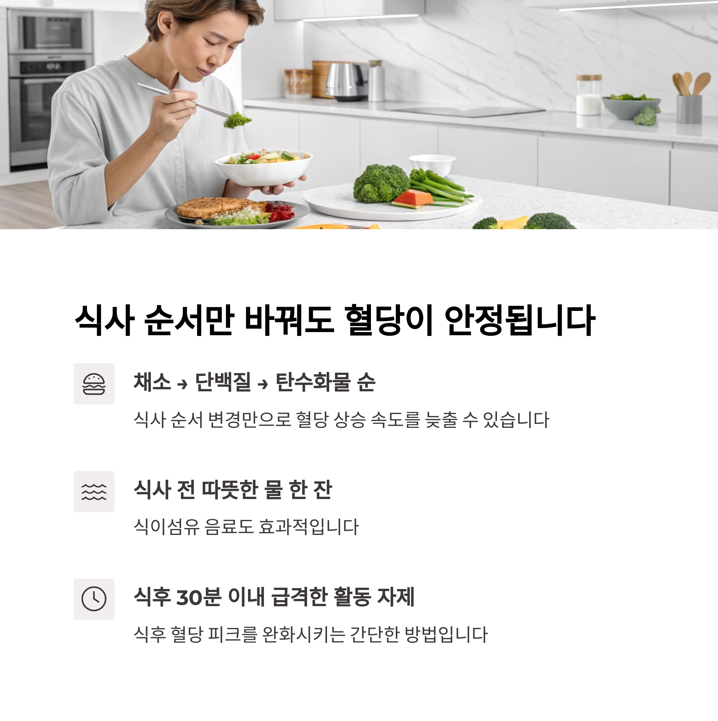 이 방식은 약 없이도 식후 혈당 피크를 완화시키는 가장 손쉬운 실천입니다.