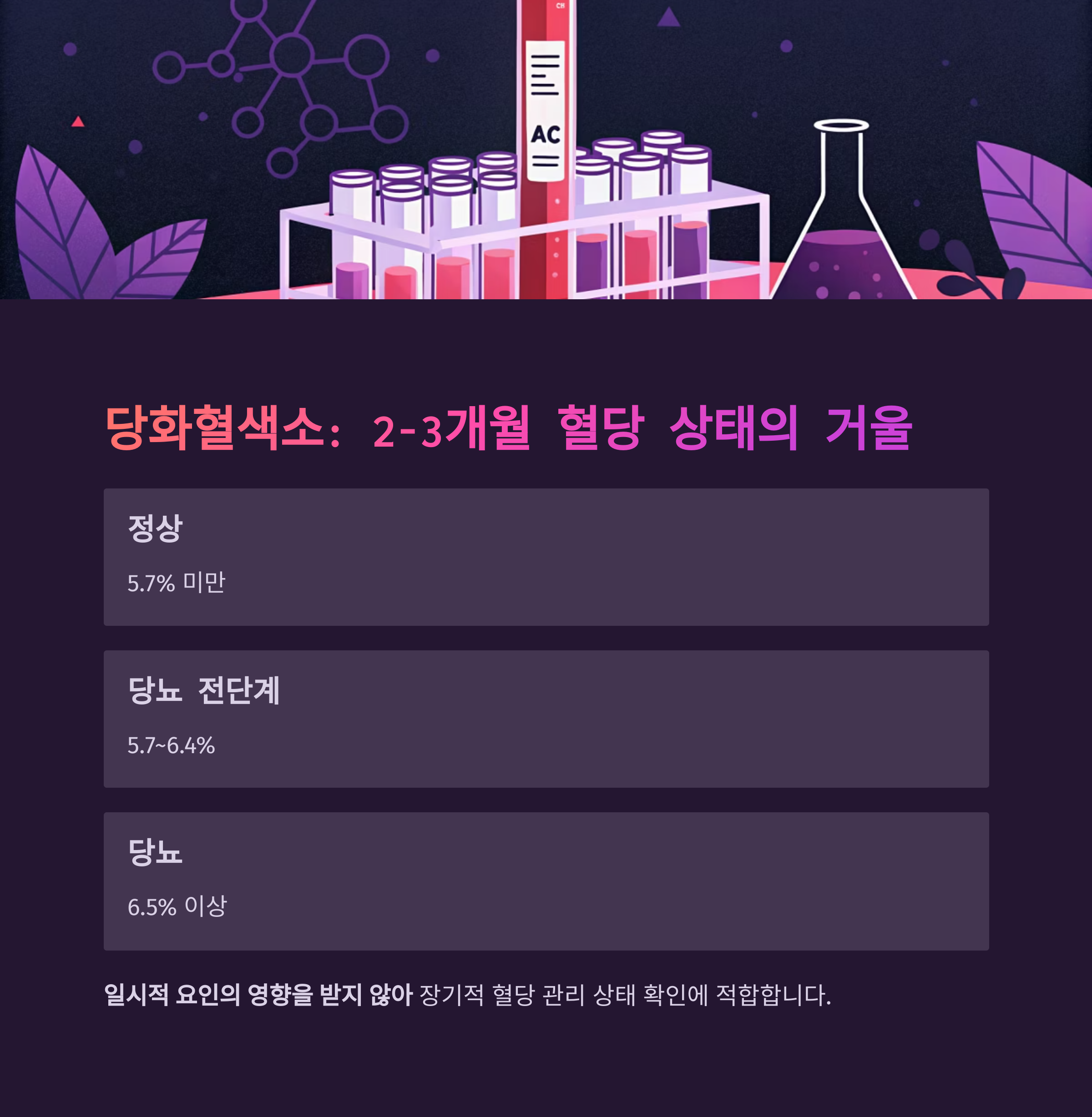 | ≥ 6.5% | 당뇨 진단 기준 |