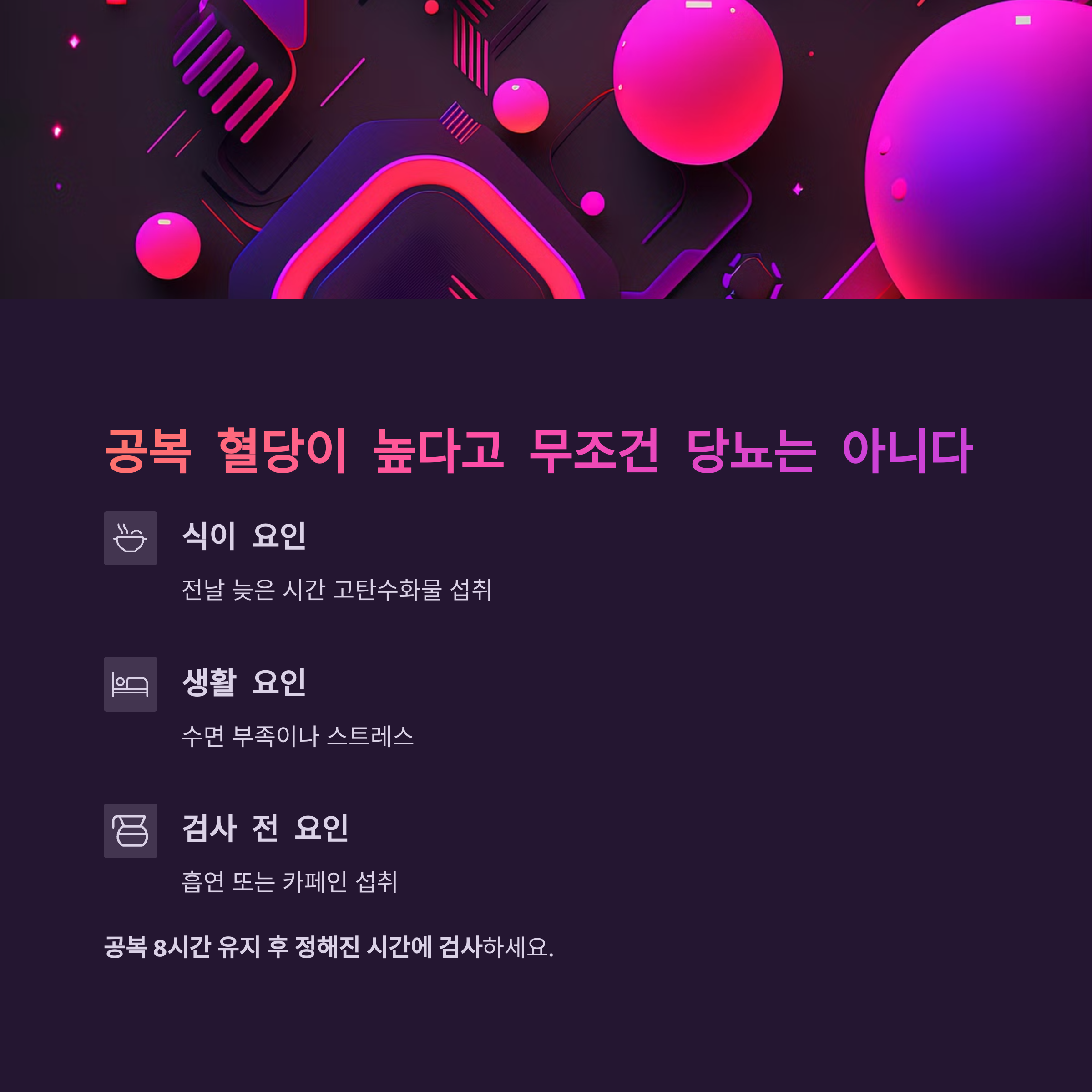 공복 혈당은 다음 상황에서 일시적으로 높게 나올 수 있습니다: