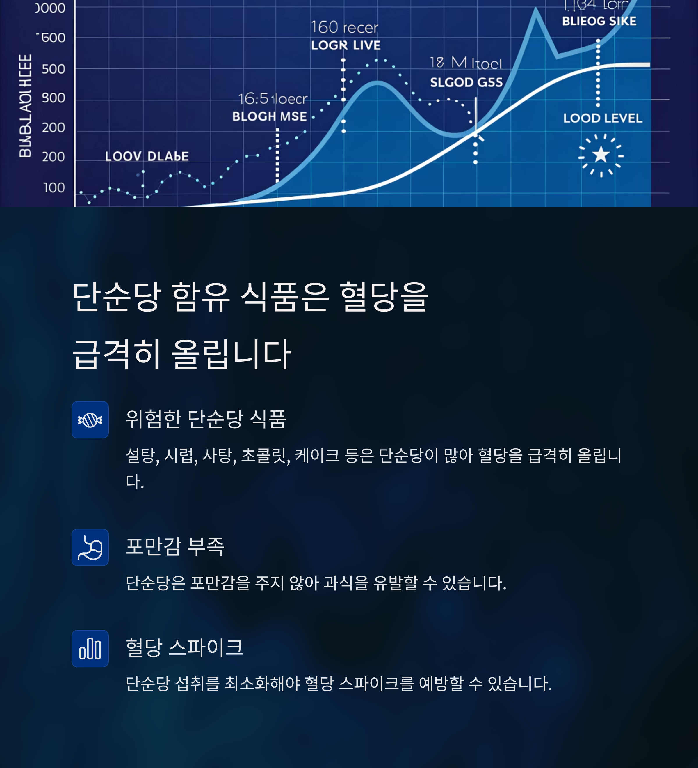 "핵심: 단순당 섭취를 최소화해야 혈당 스파이크를 예방할 수 있습니다."