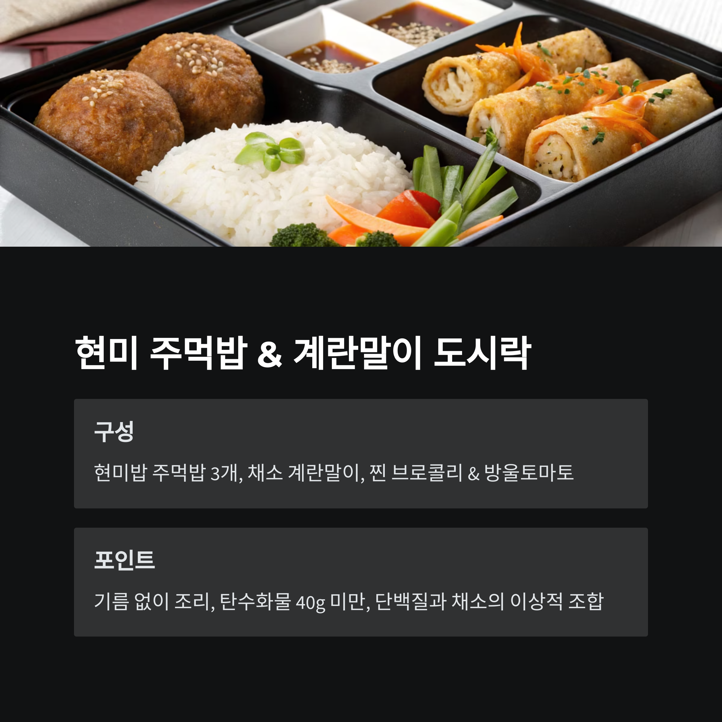 당뇨 도시락은 칼로리보다 구성의 균형과 식재료 선택이 핵심입니다.