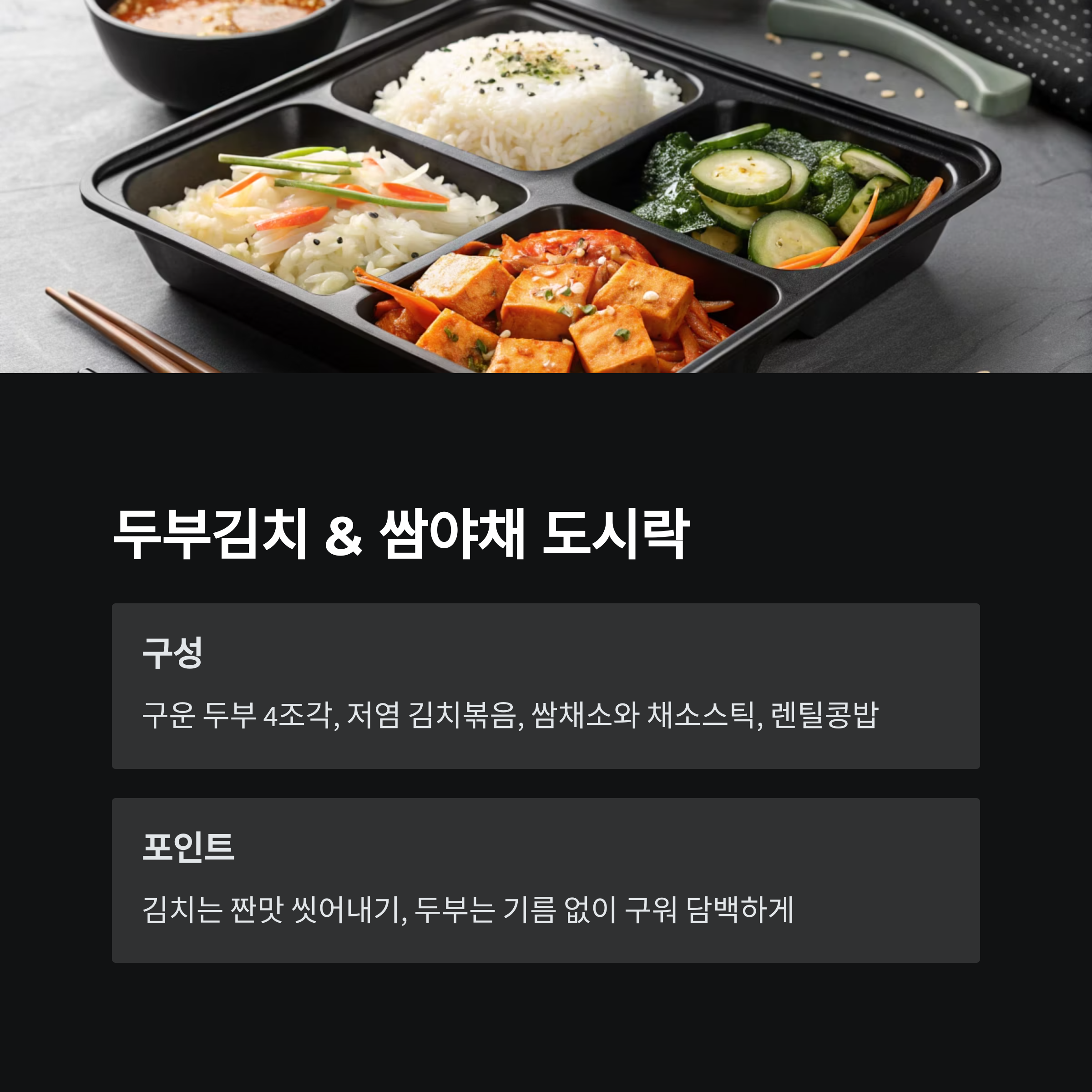 레시피 ③ 두부김치 & 쌈야채 도시락