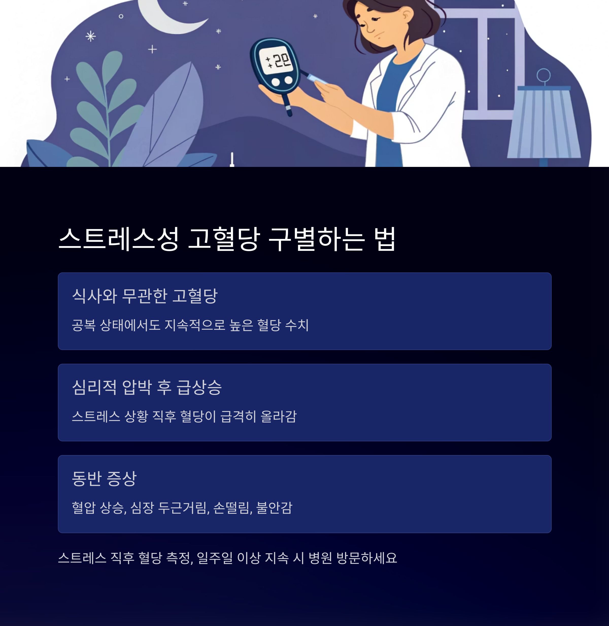 ➡ 스트레스 직후 혈당 측정, 일주일 이상 변화 지속 시 병원 방문 권장
