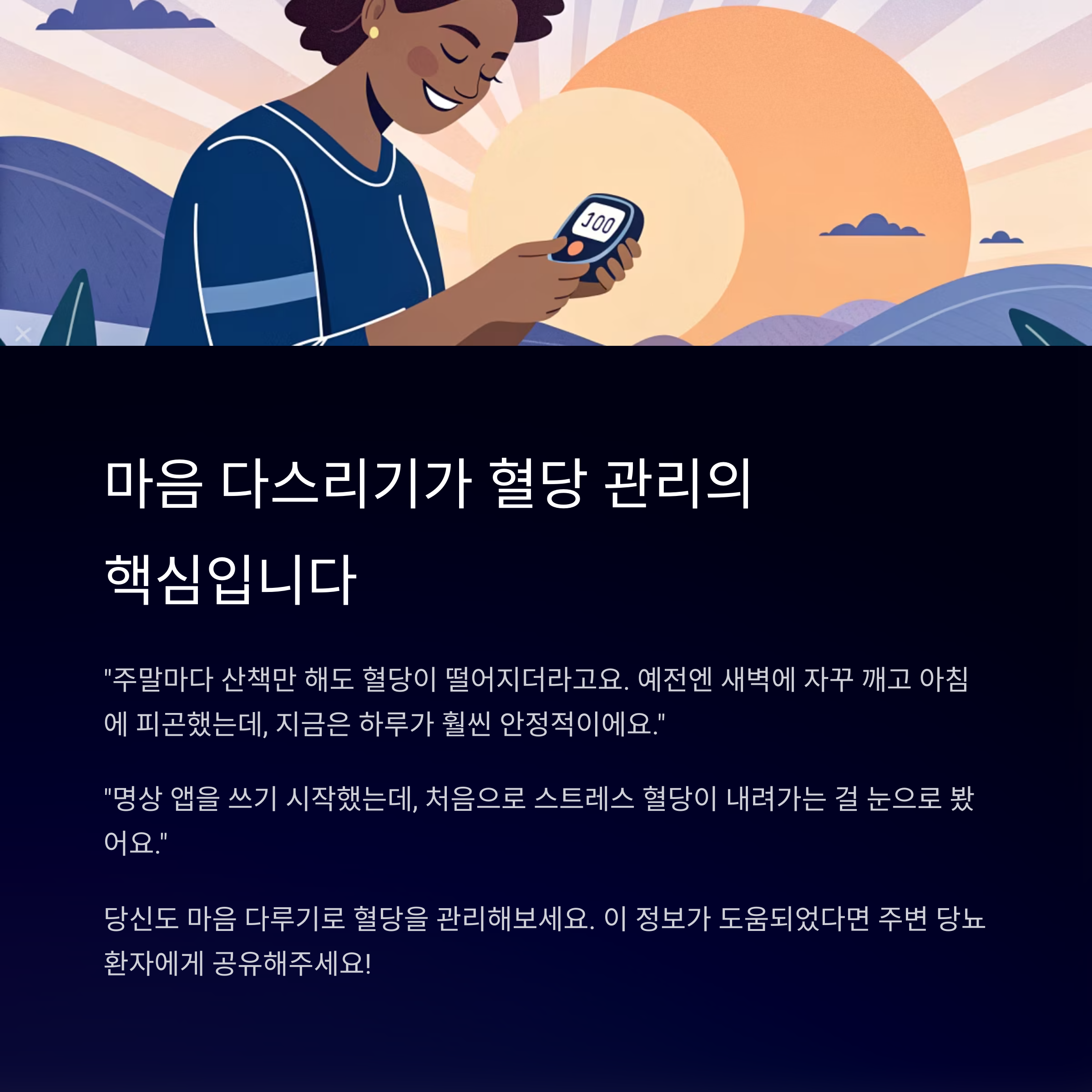 당뇨 환자들이 말하는 **가장 현실적인 변화 포인트는 ‘마음 다루기’**입니다.