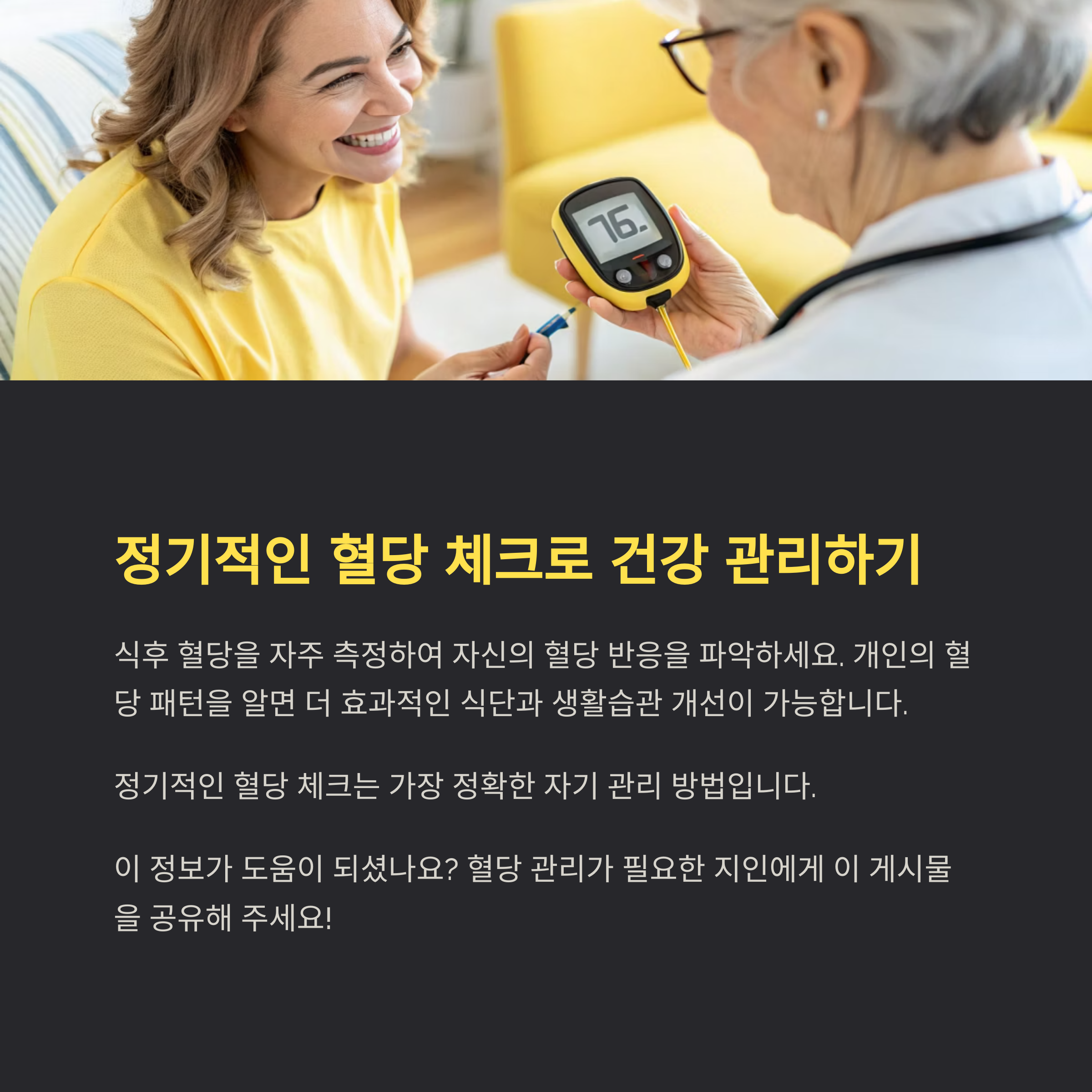 식후 혈당을 자주 측정하여 자신의 혈당 반응을 파악하세요.
