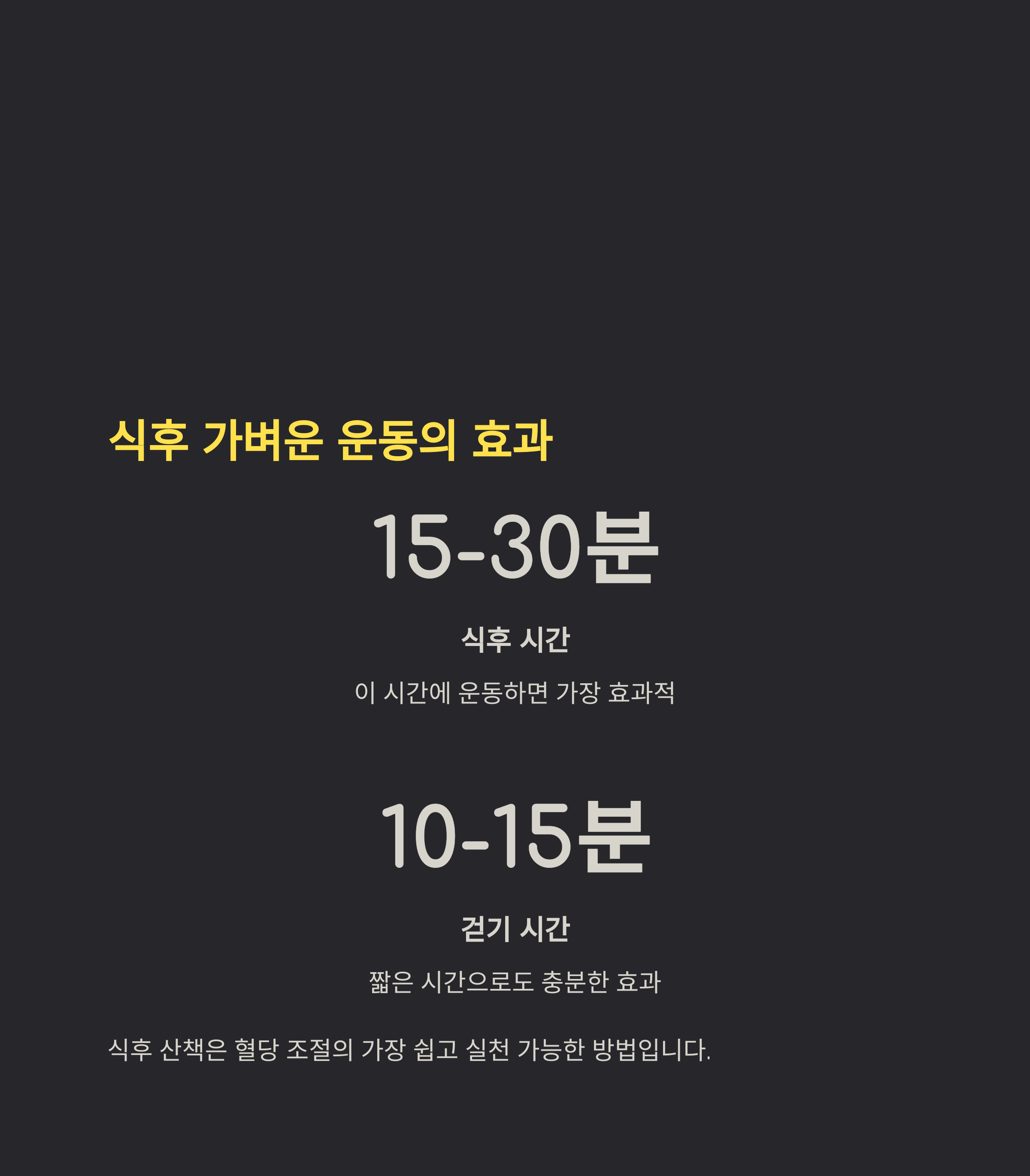 "식후 산책은 혈당 조절의 가장 쉽고 실천 가능한 방법입니다."