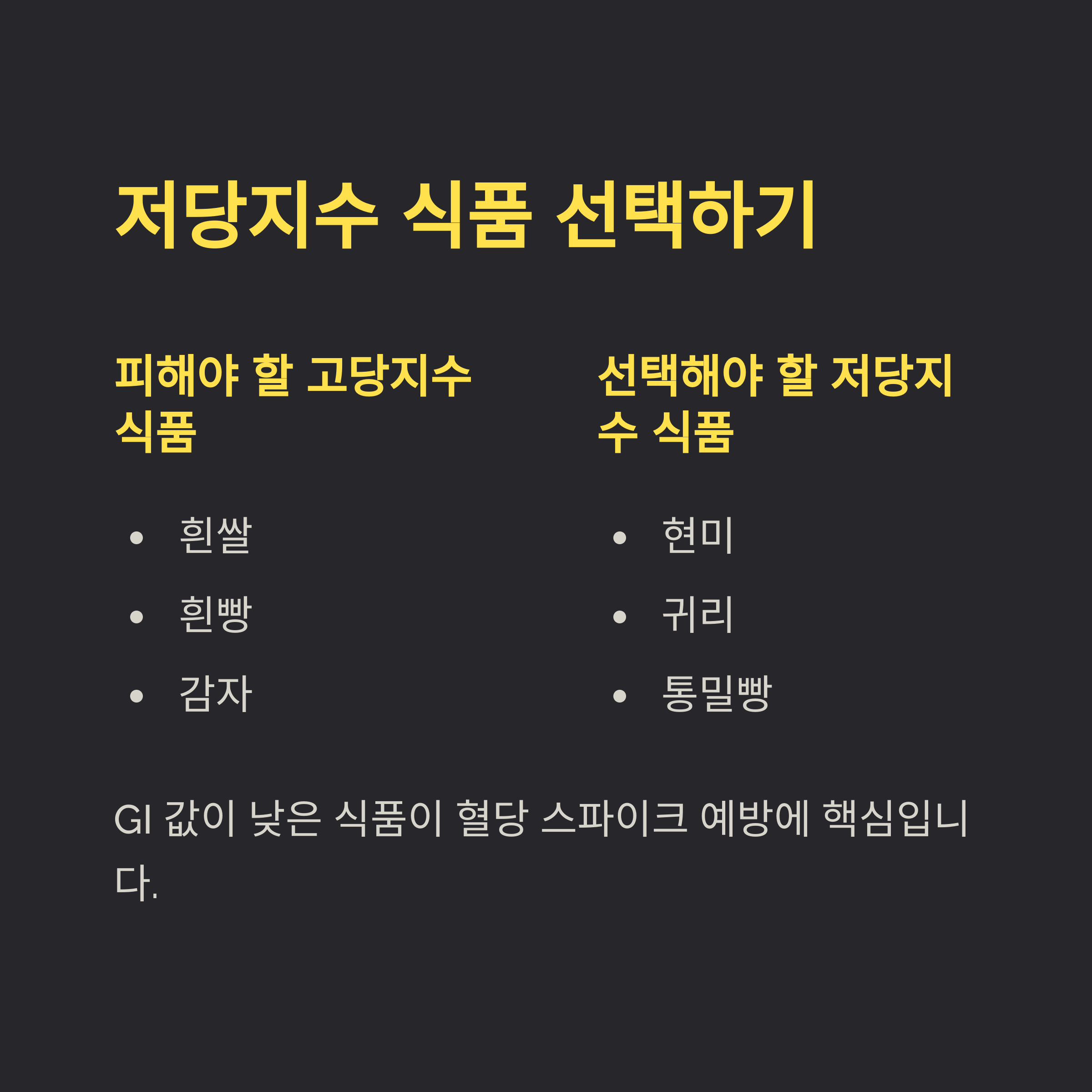 "중요: GI 값이 낮은 식품이 혈당 스파이크 예방에 핵심입니다."