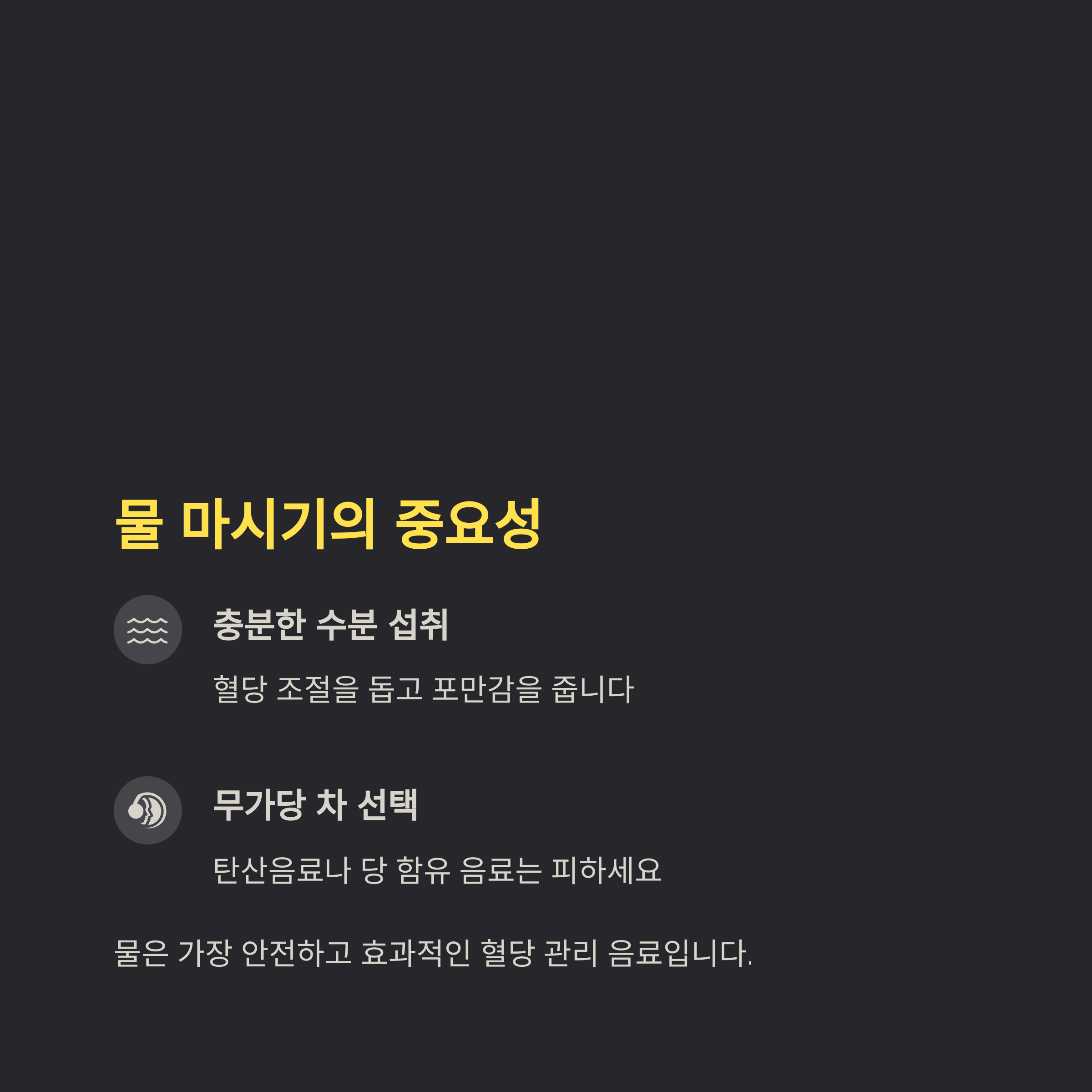"핵심: 물은 가장 안전하고 효과적인 혈당 관리 음료입니다."