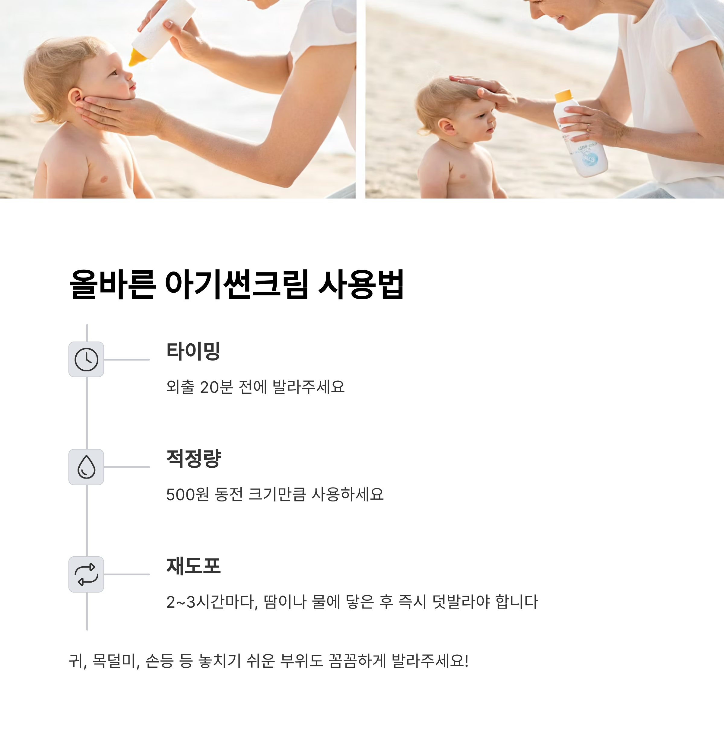 - 햇빛 노출 부위 중심으로 고르게 펴 바르기