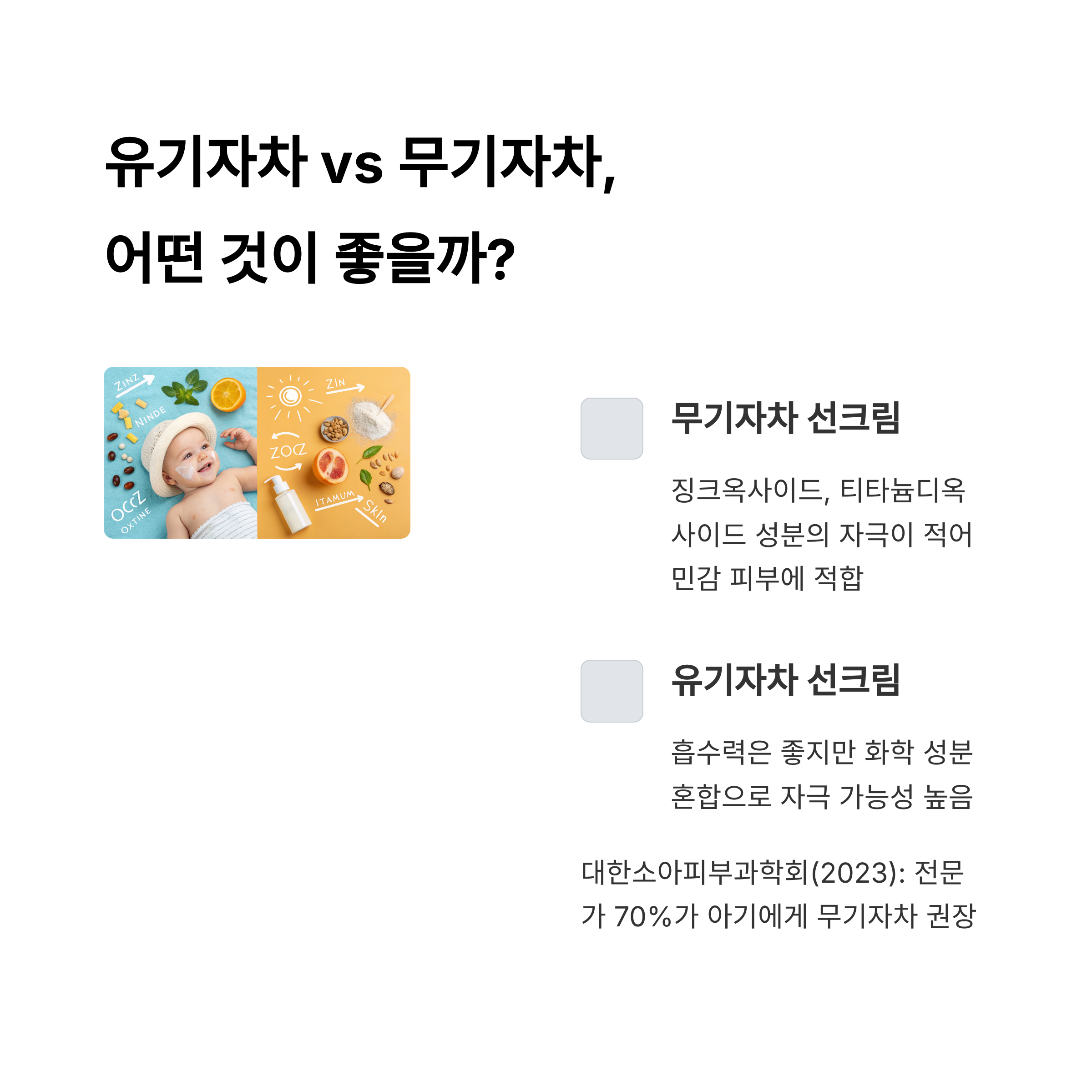 "무기자차는 백탁이 있을 수 있지만, 아기 피부에는 더 안전할 수 있어요"