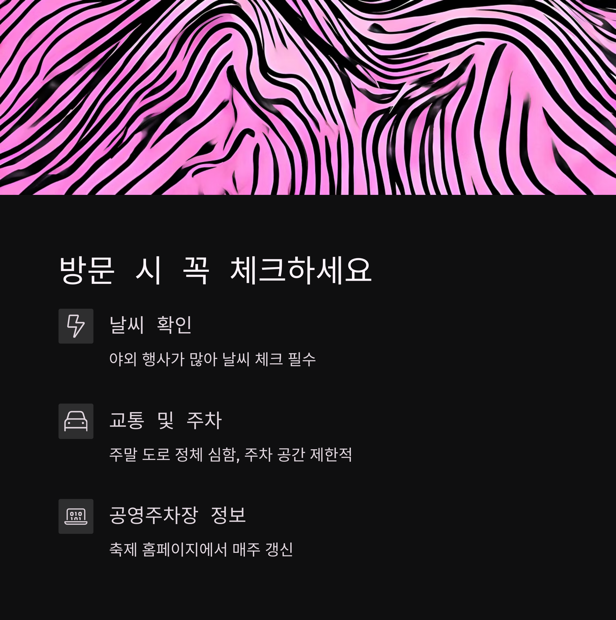 공영주차장 정보는 축제 홈페이지를 통해 매주 갱신됩니다.
