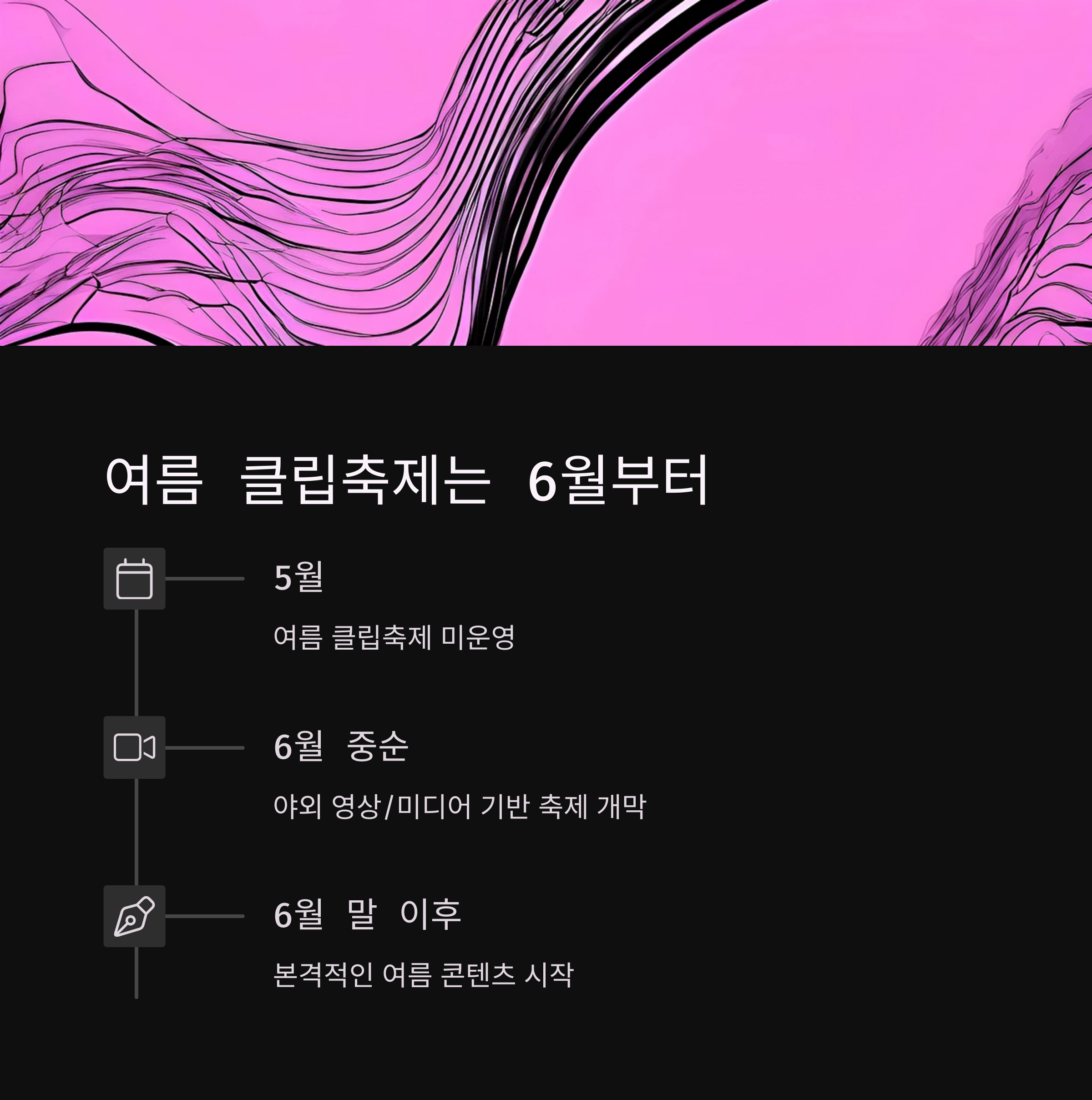 | 6월~8월 | 여름 콘텐츠 집중 | 클립형 축제 시작 시기 주의 |