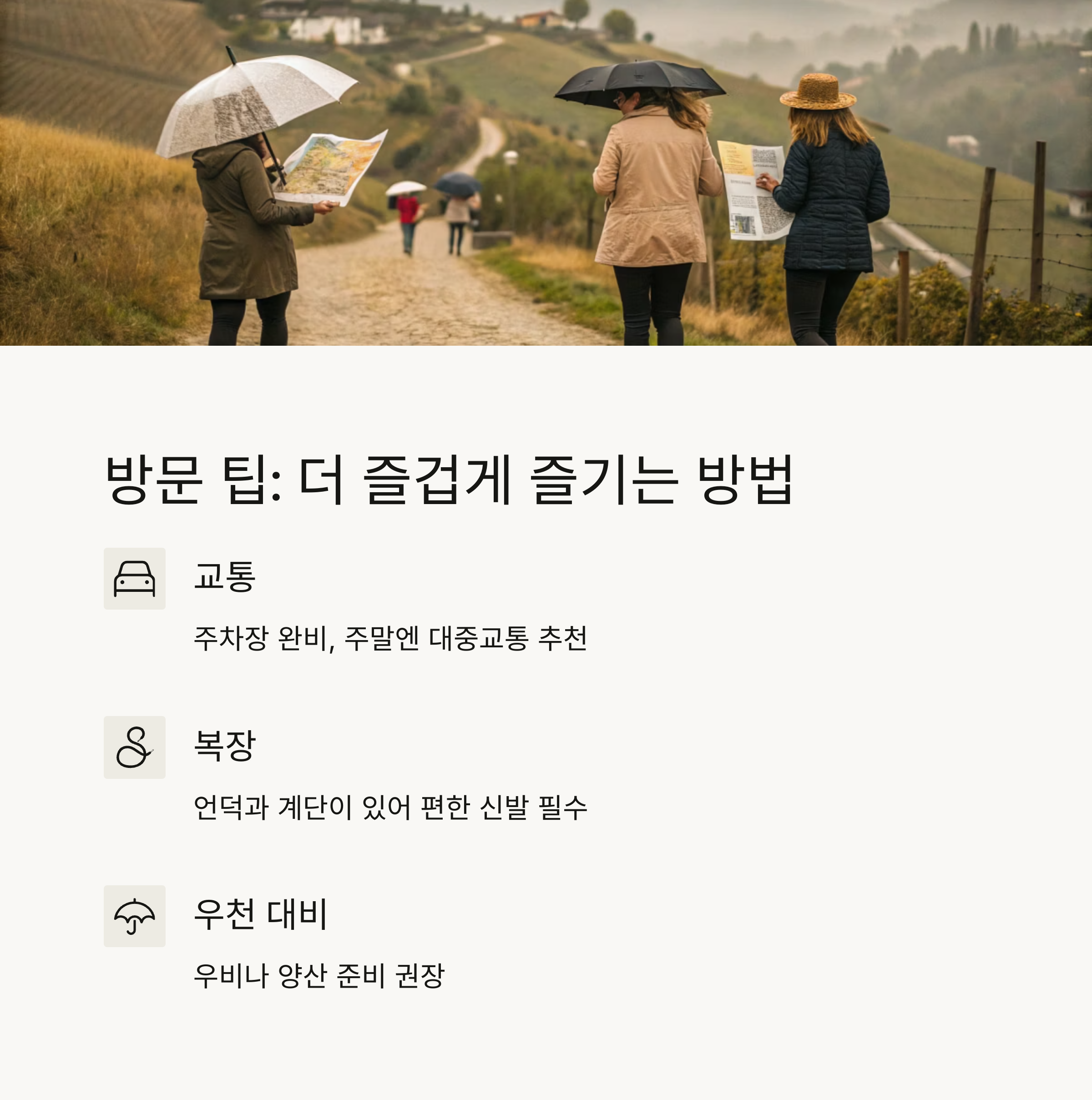 교통과 방문 팁: 주차, 동선, 복장 팁까지
