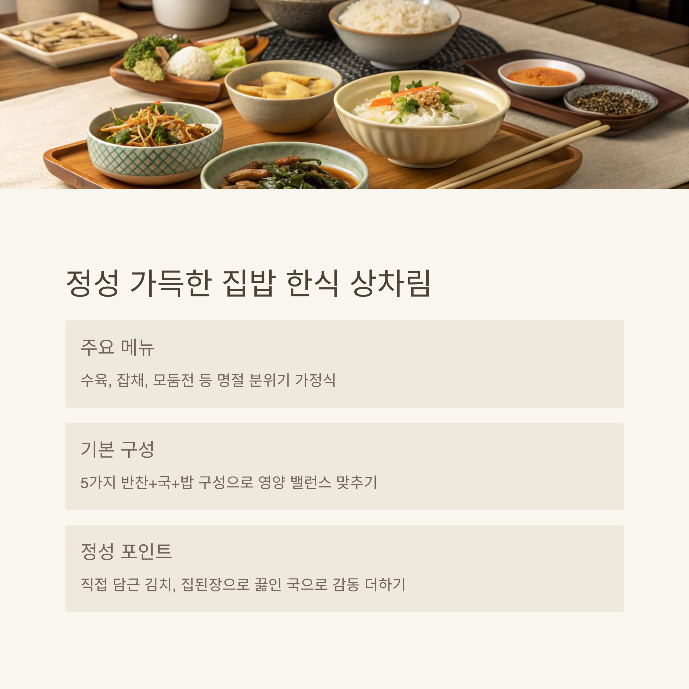 한국적인 정성과 풍성함이 느껴지는 한식은 가장 안정적인 선택입니다.