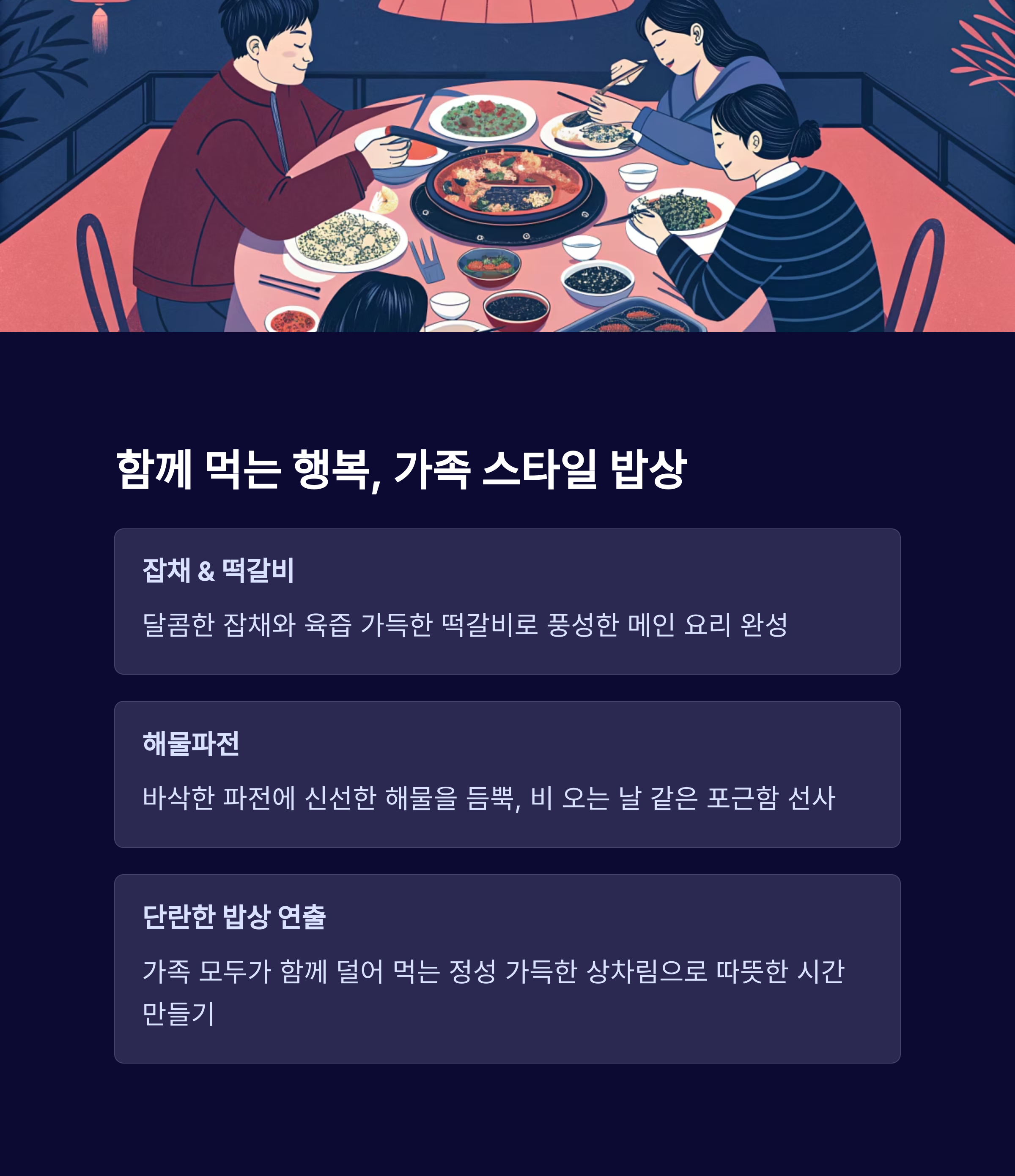 가족이 함께 모여 먹는 따뜻한 식사는 무엇보다 큰 선물입니다.