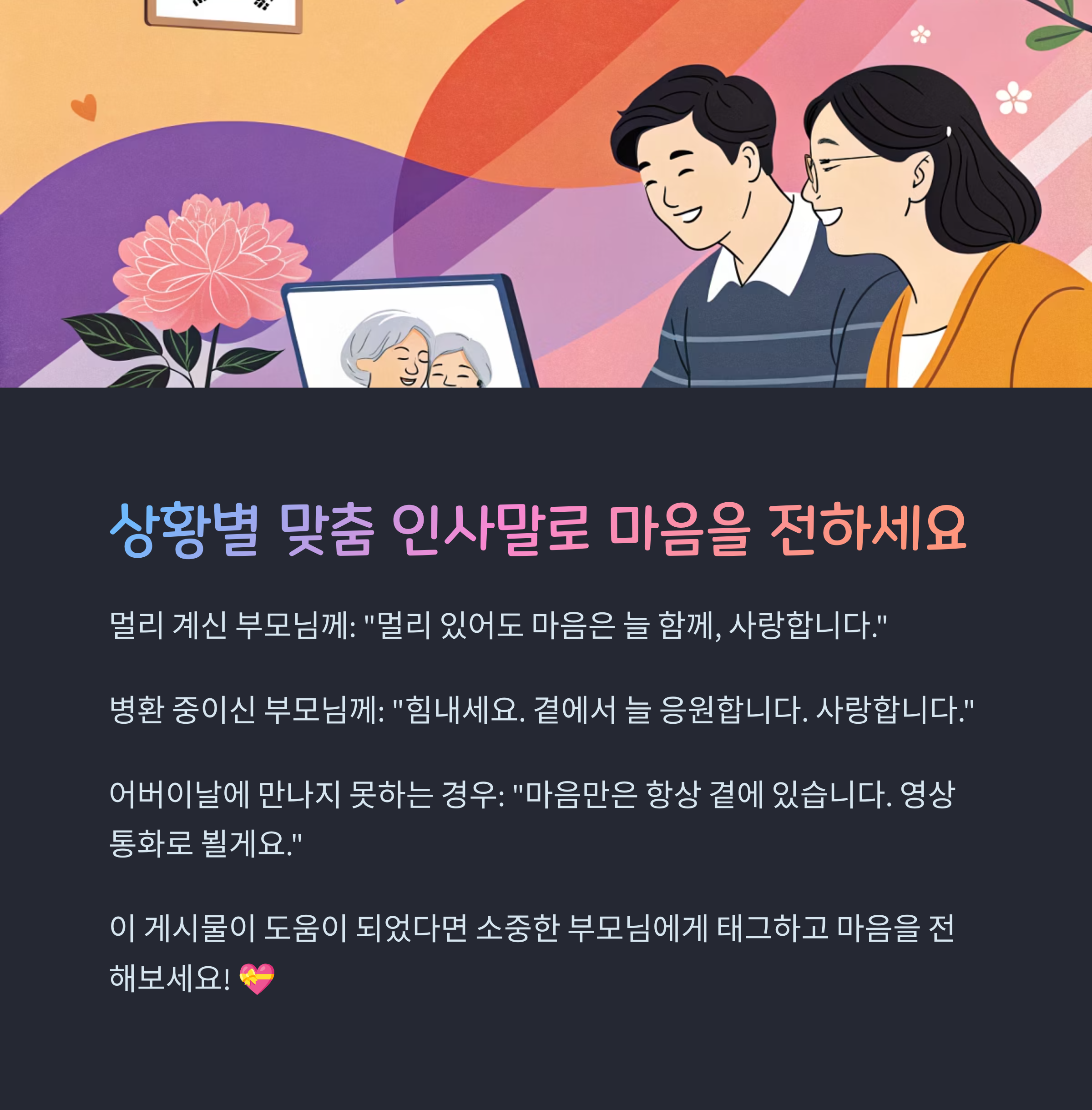 "어버이날을 맞아 존경과 감사의 마음을 전합니다"