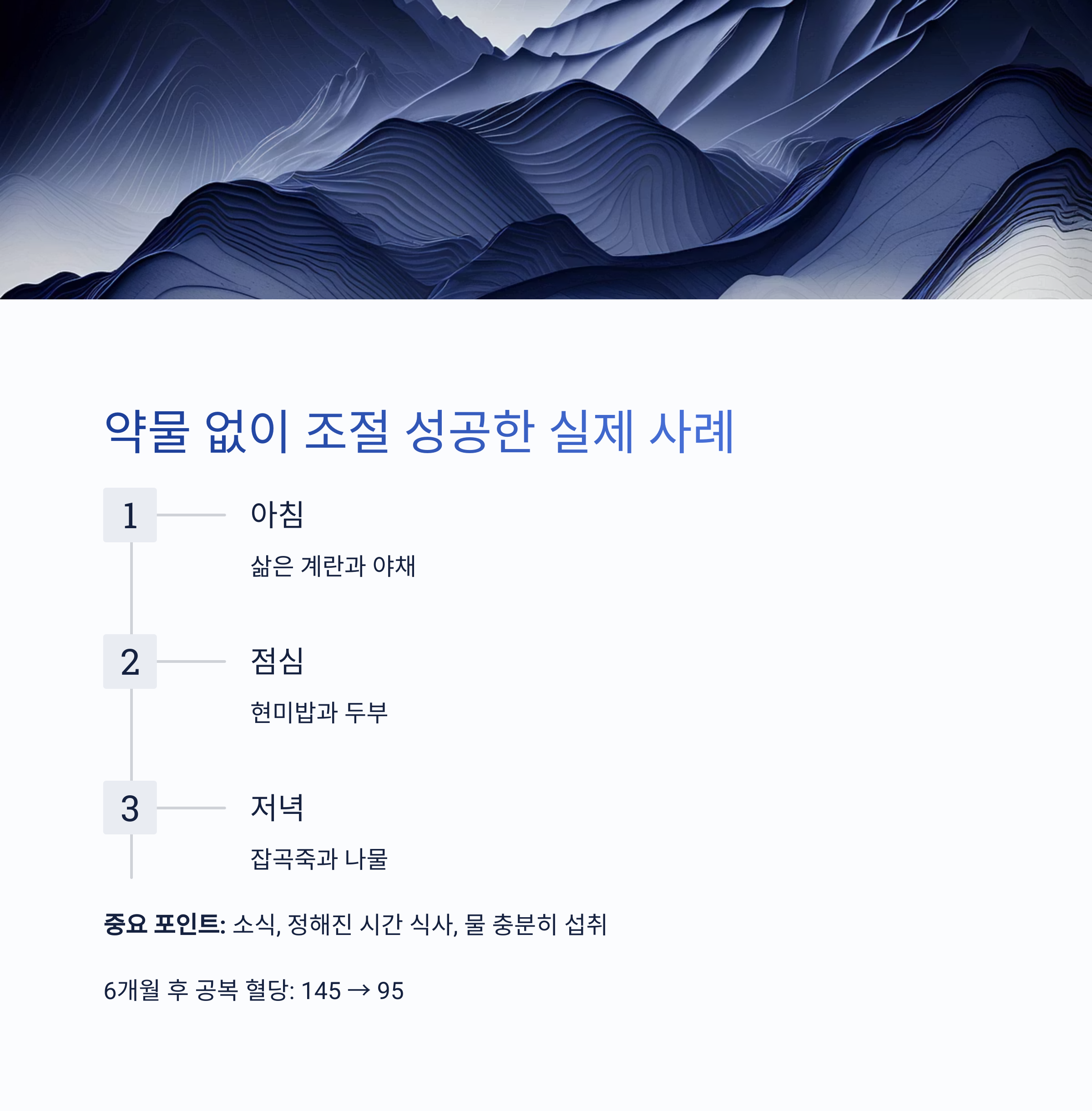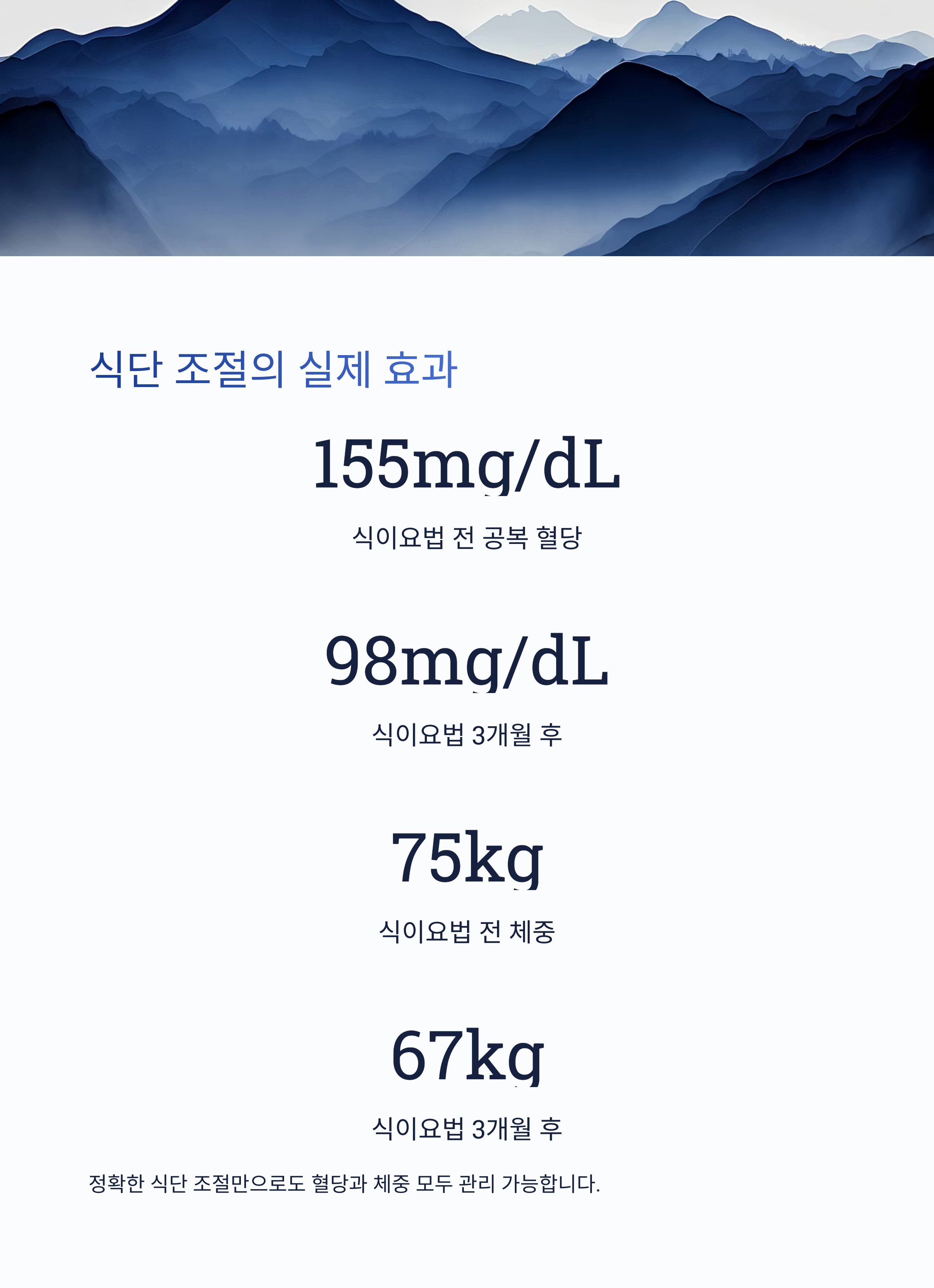 이처럼 정확한 식단 조절만으로도 혈당과 체중 모두 관리 가능합니다.