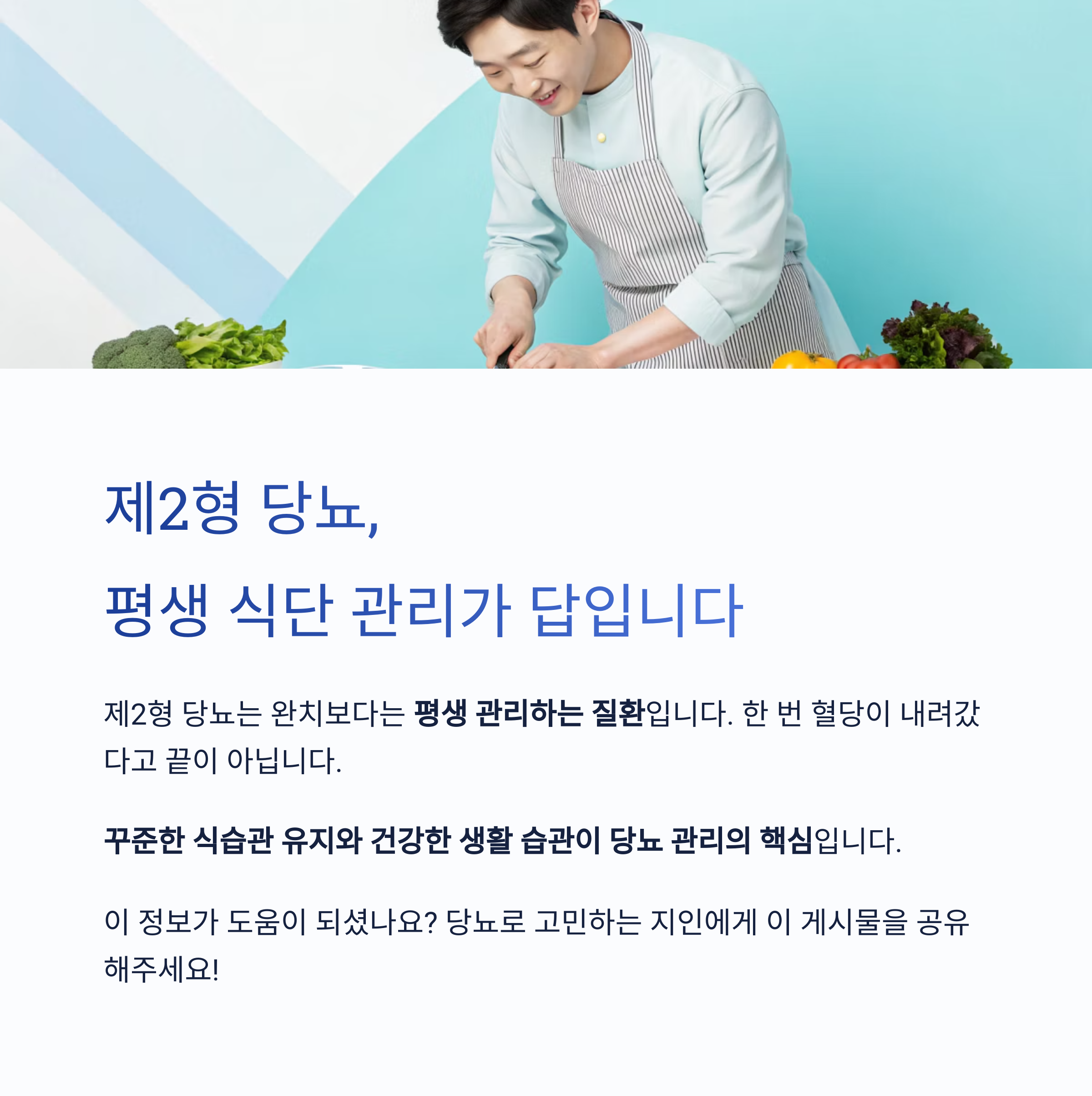 제2형 당뇨는 완치보다는 평생 관리하는 질환입니다.