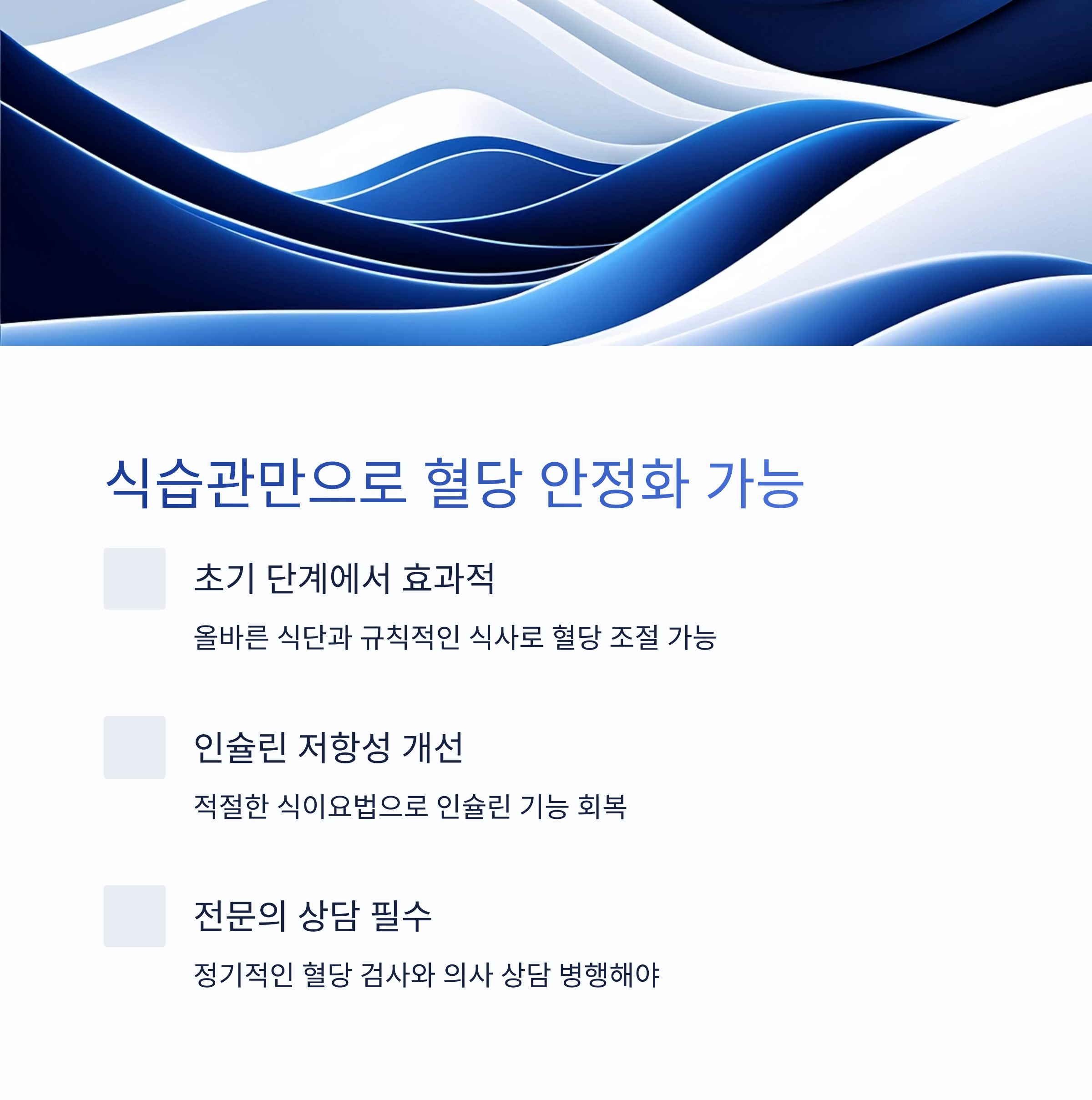 제2형 당뇨는 초기 단계에서 식습관 개선만으로도 혈당을 안정화할 수 있습니다.