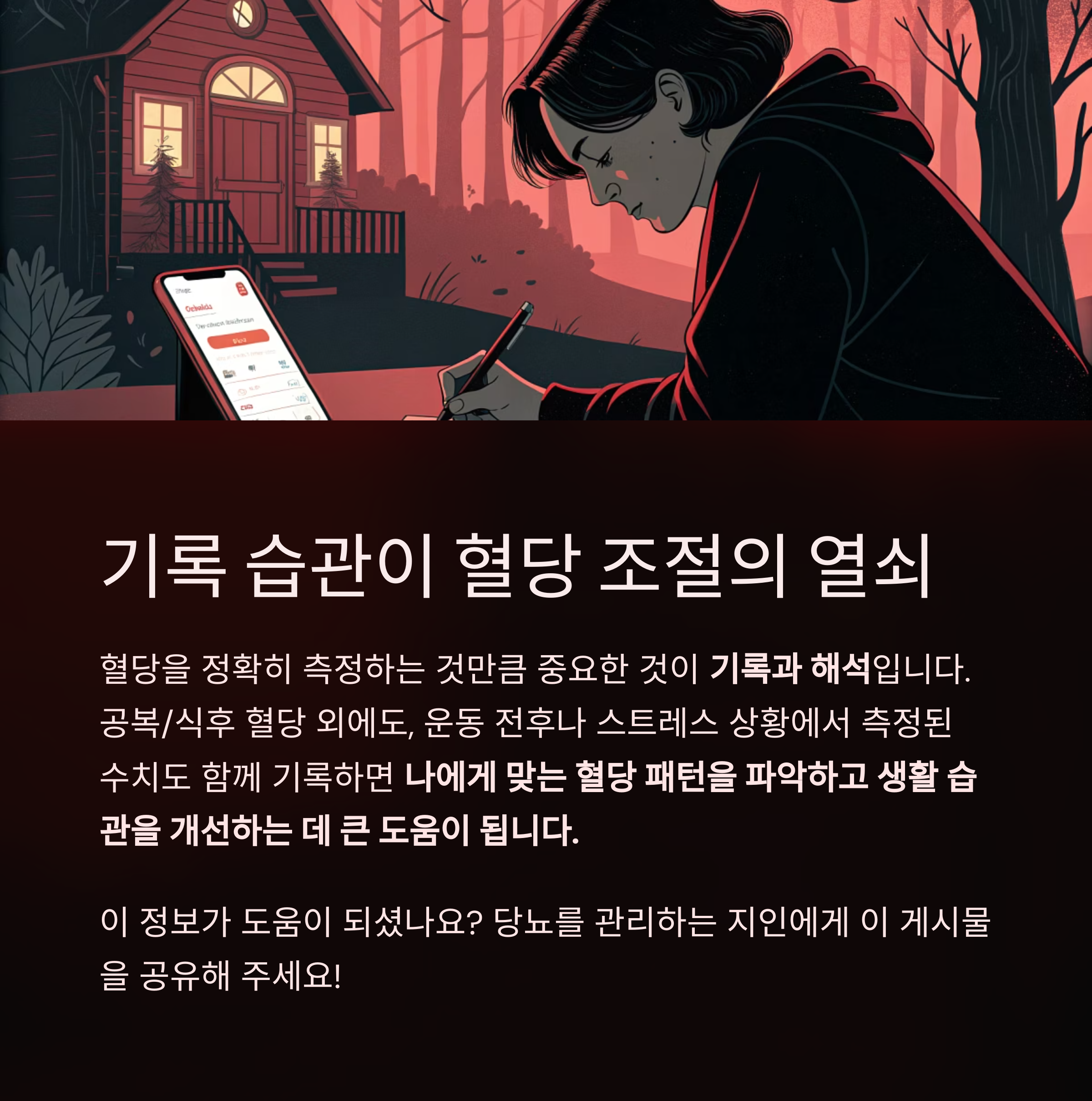 혈당을 정확히 측정하는 것만큼 중요한 것이 기록과 해석입니다.