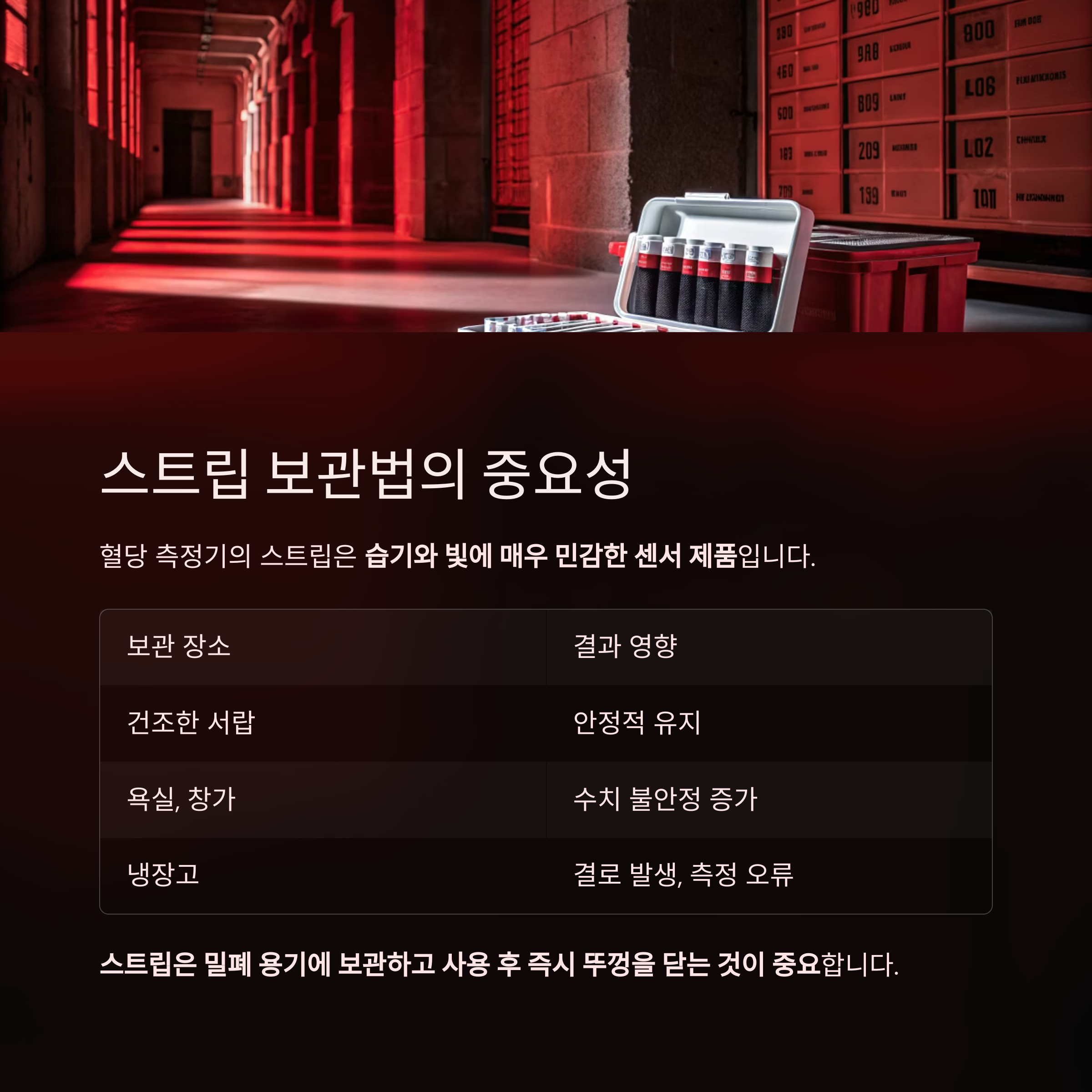 스트립은 밀폐 용기에 보관하고 사용 후 즉시 뚜껑을 닫는 것이 중요합니다.