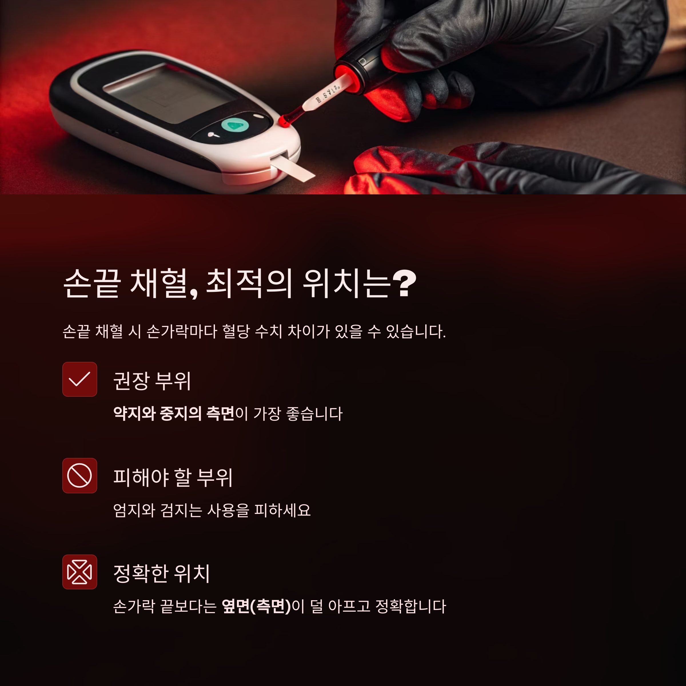 손끝 채혈 시 손가락마다 혈당 수치 차이가 있을 수 있습니다.