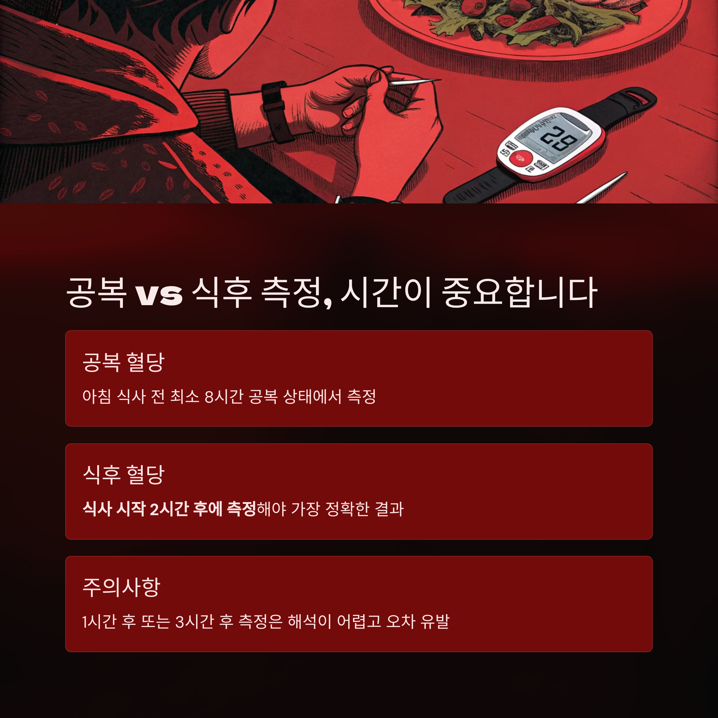 공복 혈당은 아침 식사 전 최소 8시간 공복 상태에서 측정해야 하며,