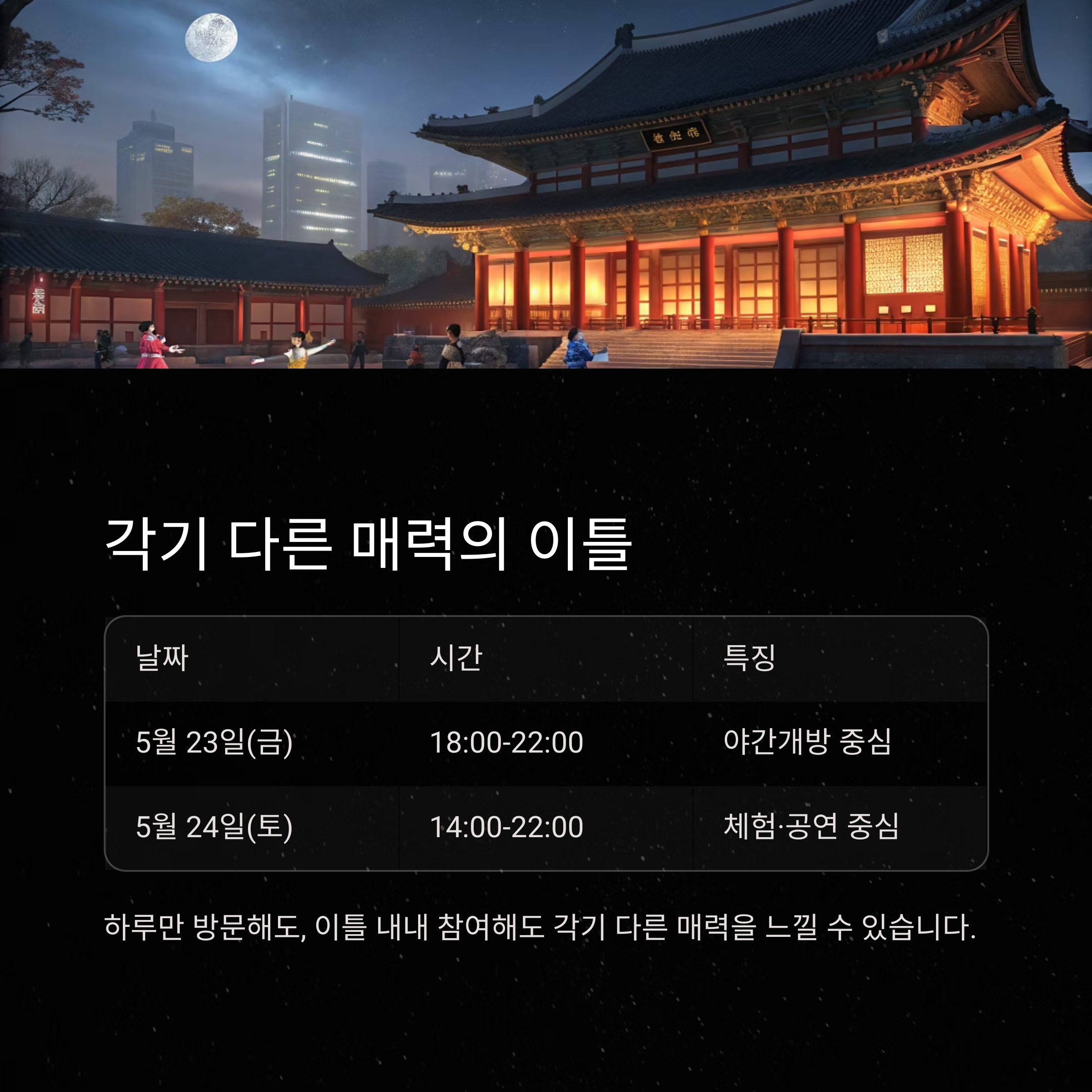 야간 특별 개방과 함께 관람객을 맞이합니다.